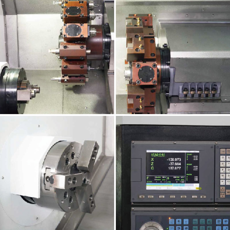সরঞ্জামগুলি একটি 12-স্টেশন পাওয়ার ট্যুরেট দিয়ে সজ্জিত, যা বিভিন্ন সরঞ্জাম কনফিগারেশনগুলিকে সমর্থন করে, এটি বিভিন্ন প্রক্রিয়াগুলির প্রক্রিয়াজাতকরণ দক্ষতার সাথে সম্পূর্ণ করতে, সরঞ্জাম পরিবর্তনের সময় হ্রাস করতে এবং সামগ্রিক উত্পাদন দক্ষতা উন্নত করতে সক্ষম করে। পাওয়ার ট্যারিটের উচ্চ স্থায়িত্ব দীর্ঘমেয়াদী অবিচ্ছিন্ন প্রক্রিয়াজাতকরণের সময় নির্ভরযোগ্যতাও নিশ্চিত করে।